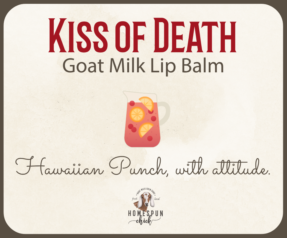 Dare to make a statement with this unique, tropical twist on lip care—grab your Kiss of Death Lip Balm today and let your lips do the talking!